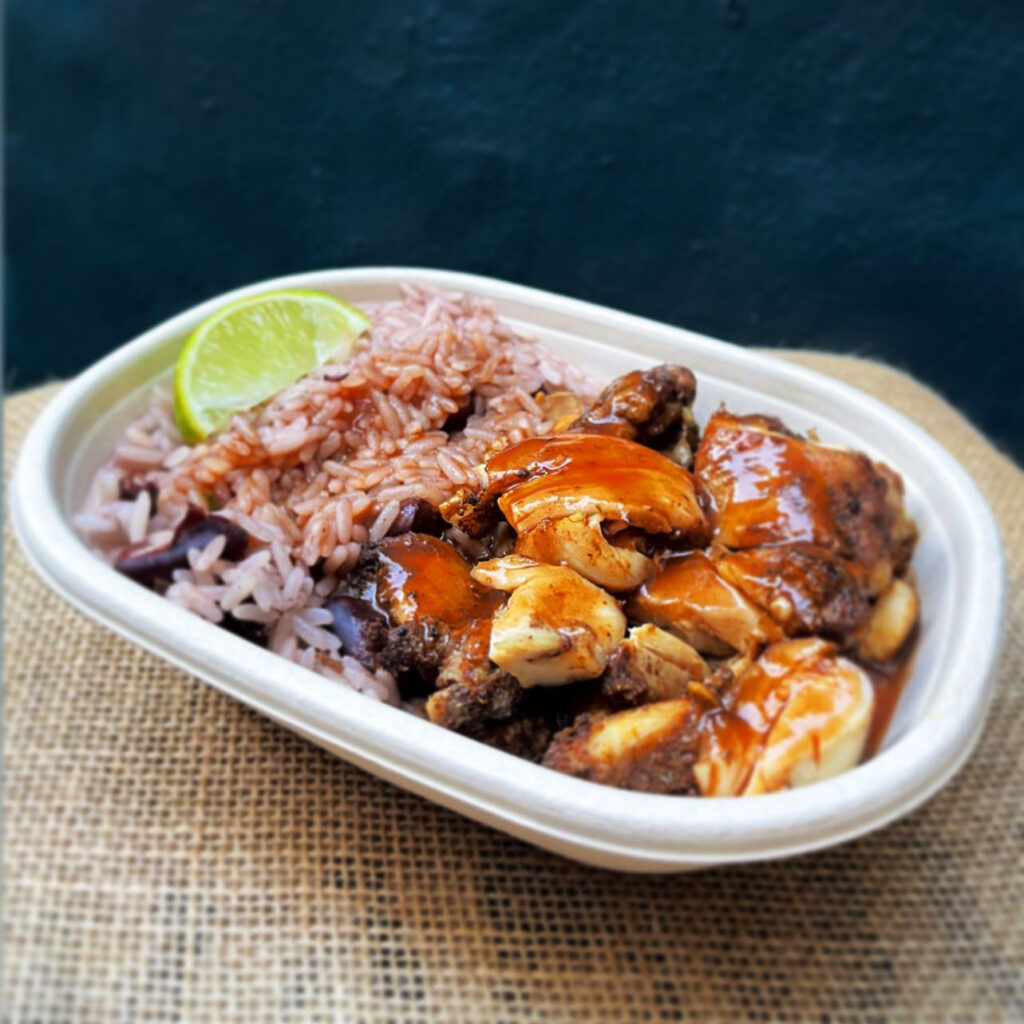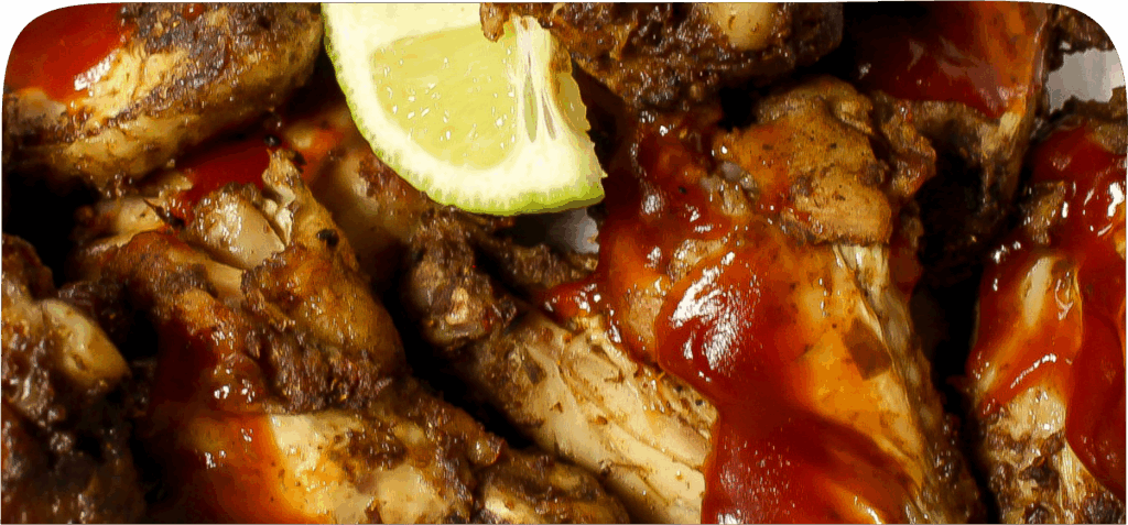 Juicy seasoned chicken, with a real Jamaican smoked jerk